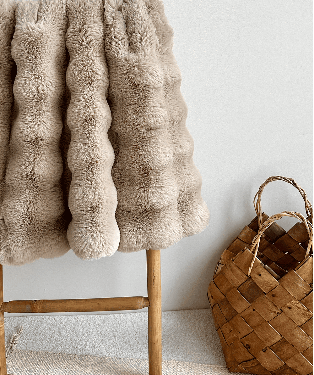 BUBBLE kolekcijos dvipusis, premium dirbtinio kailio vaikiškas pledas, smėlio spalvos – rankų darbo pledas vaikams, sukurtas švelniam jaukumui, ramybei ir saugumo pojūčiui nuo pirmųjų dienų. Kailį primenanti audinio tekstūra yra itin minkšta, švelni ir maloni prisilietimui, tinkama jautriai vaiko odai. Natūrali, šiluma dvelkianti estetika lengvai įsilieja į vaiko kambarį ar bendrą namų erdvę.