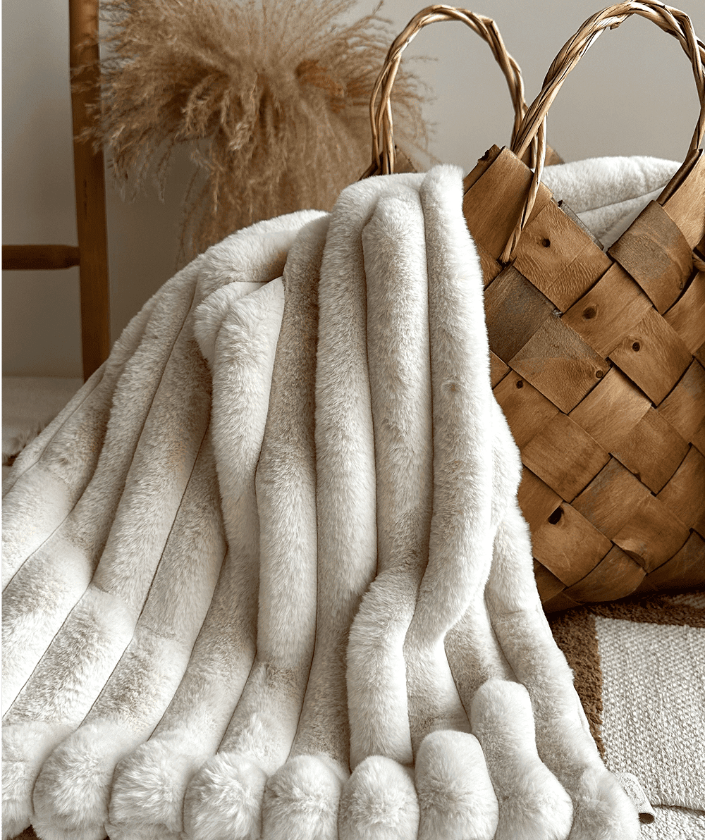 CLOUD kolekcijos dvipusis, premium dirbtinio kailio pledas, ecru spalvos – itin švelnus, šviesus pledas namams, sukurtas ramybei, poilsiui ir subtiliam jaukumo pojūčiui. Minimalistinis, lengvai derinamas interjere.