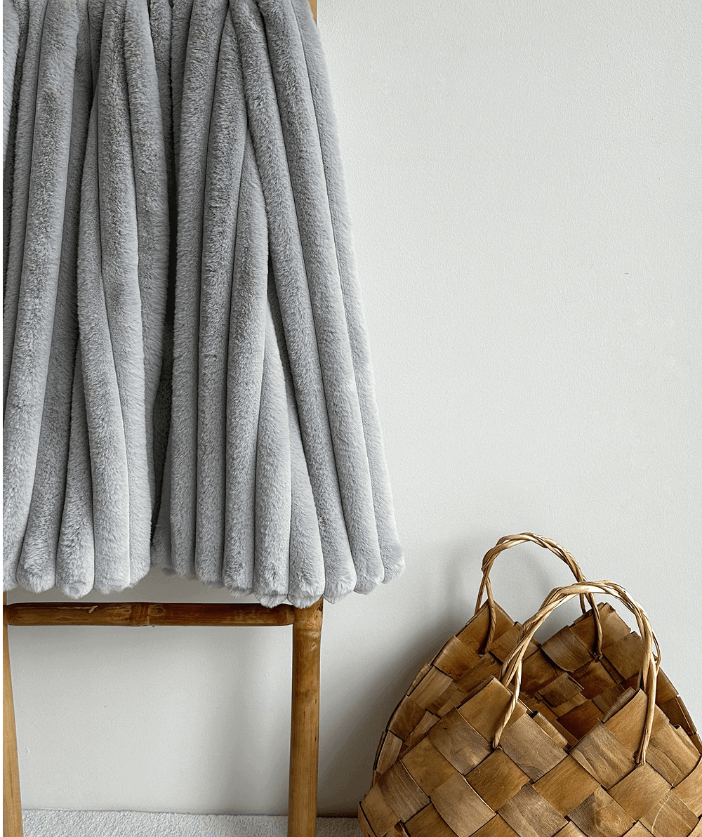Aukštos kokybės tekstilė sukuria apgaubiantį, šiltą dirbtinio kailio pledo pojūtį, kuris natūraliai kviečia sulėtėti. Tai pledas, prie kurio norisi sugrįžti lėtais vakarais, ilsintis, skaitant ar tiesiog būnant namuose.