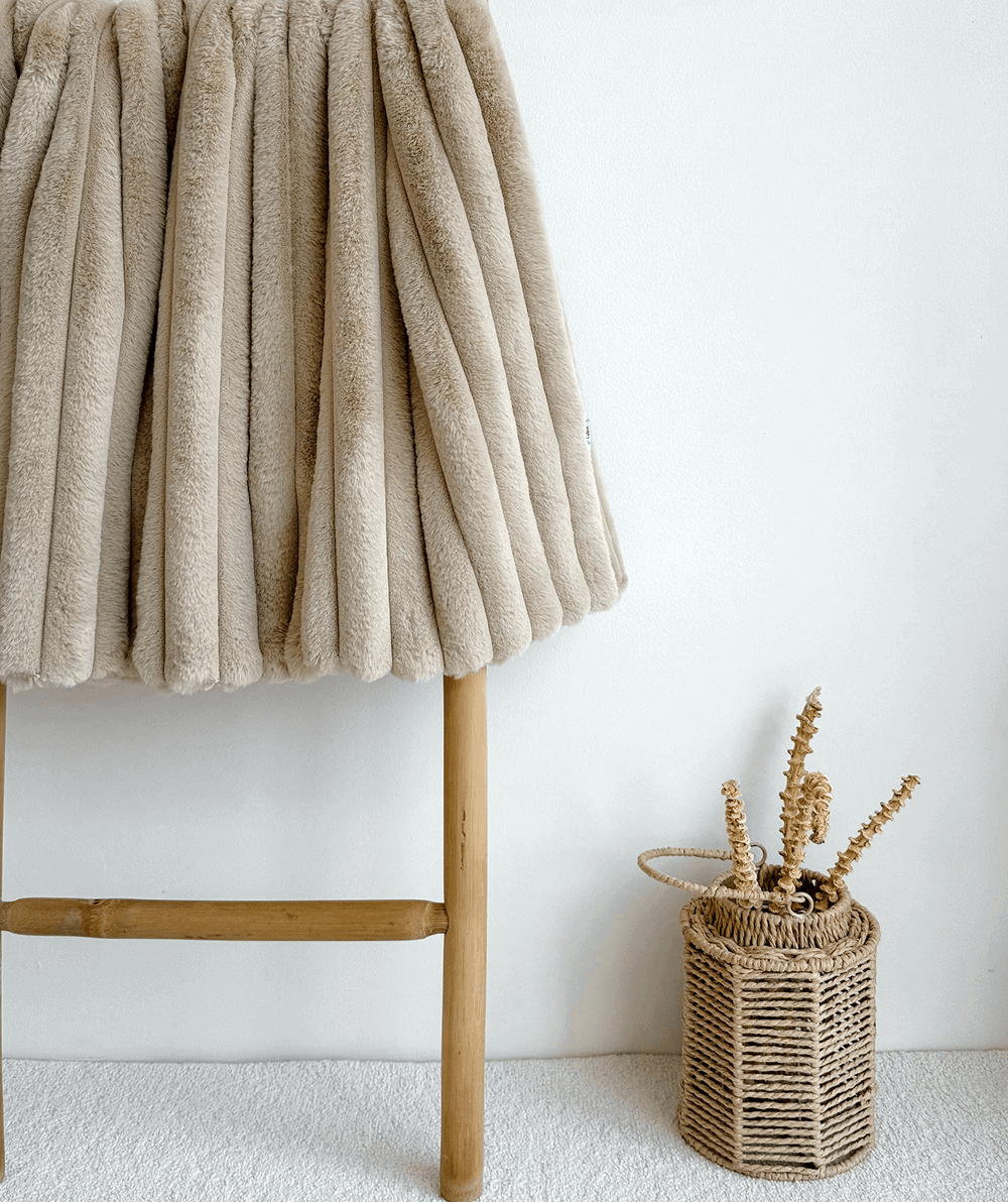 CLOUD kolekcijos dvipusis, premium dirbtinio kailio pledas, smėlio spalvos – tai rankų darbo gaminys, pasiūtas Lietuvoje, skirtas šviesiems, ramiems namams ir tiems, kurie vertina natūralų paprastumą bei ilgalaikį jaukumą. Kailį primenanti audinio tekstūra vizualiai atrodo minkšta ir lengva, o prisilietimui išlieka itin švelni ir maloni.
