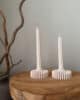 Rankų darbo kvapnios sojų vaško žvakės Loom Column išsiskiria elegantiška, skulptūriška forma ir minimalistiniu dizainu. Banguotas pagrindas ir lieknas siluetas sukuria subtilų akcentą, kuris harmoningai įsilieja į namų erdves.