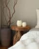 Apvali „Mellow Round“ forma ir natūrali estetika leidžia žvakei lengvai įsilieti į skandinavišką, japandi ar boho stiliaus interjerą. Ji puikiai tinka kavos staliukui, lentynai, naktiniam staliukui ar kaip estetiška, apgalvota dovana.