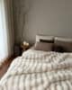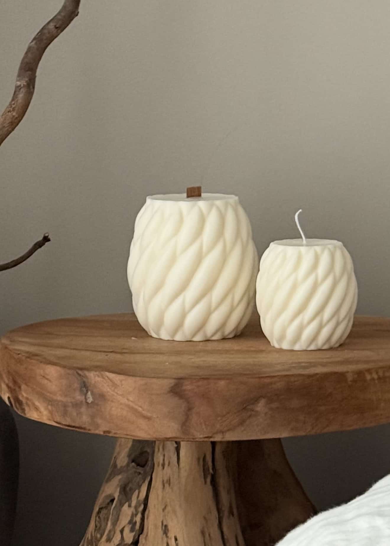 MELLOW ROUND kolekcijos rankų darbo sojų vaško žvakė „Vanilla & Tobacco“ rankomis lieta iš natūralaus, aukštos kokybės sojų vaško. Jos paviršių puošia subtilus, pintą tekstilę primenantis raštas, kuris ne tik išryškina formą, bet ir kuria jaukumo bei šilumos pojūtį namų erdvėje.