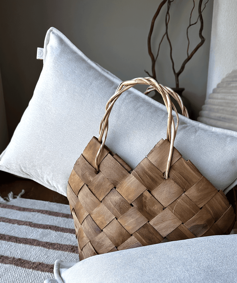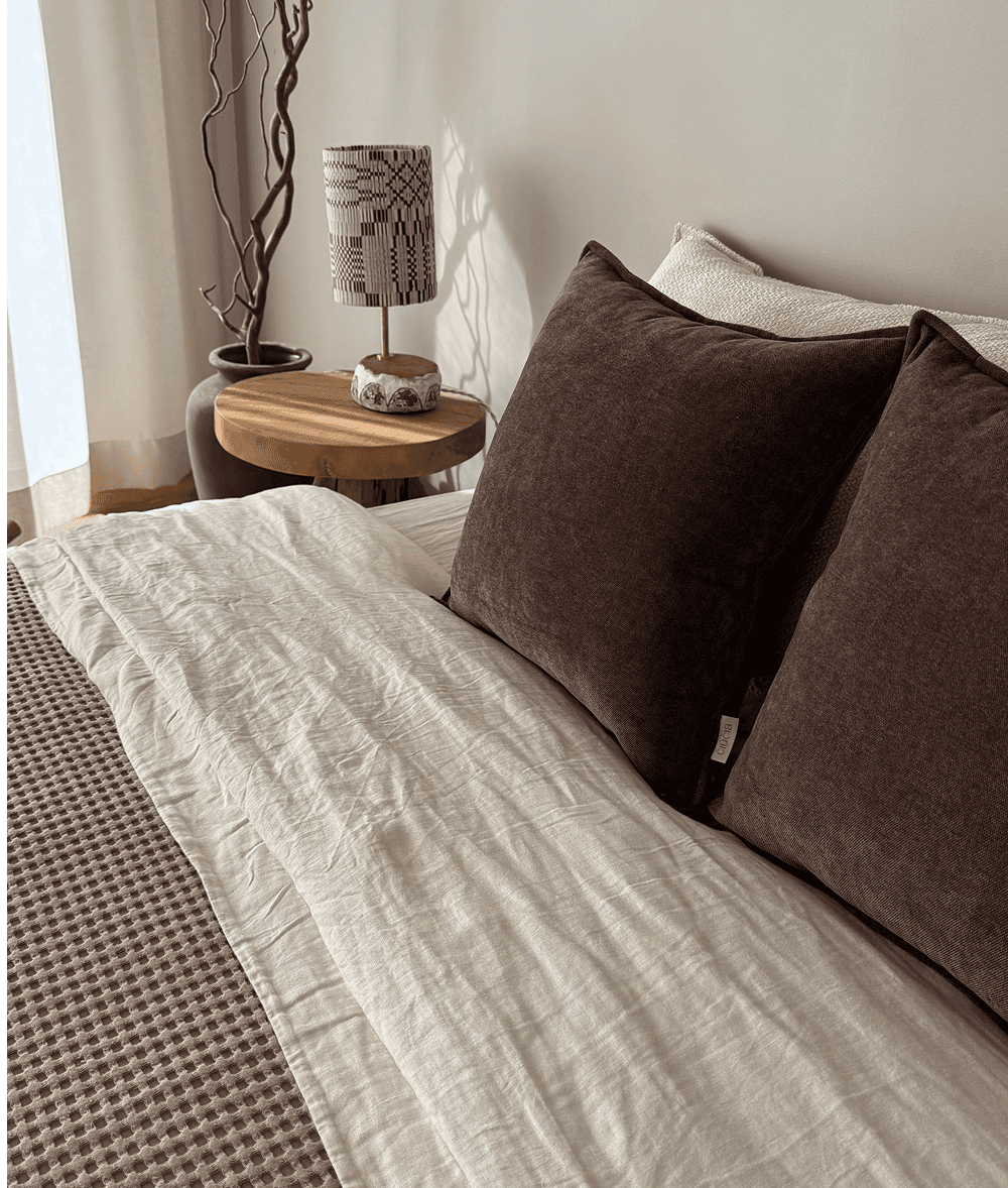 Pagalvės kraštelį galite rinktis pagal savo skonį – subtiliai apsiūtą arba paliktą natūralų, neapsiūtą, kuris suteikia šiek tiek laisvesnio stiliaus.